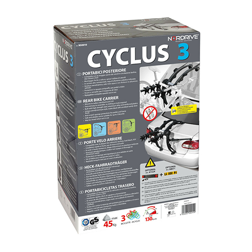 Fietsendrager Cyclus 3, te monteren op de achterzijde van de auto, past op een sedan, hatchback en SUV