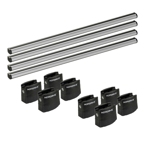 Deze set bestaat uit 4 dakdrager stangen met een draagvermogen van 50 kg per stang. De stangen zijn 150 cm lang.