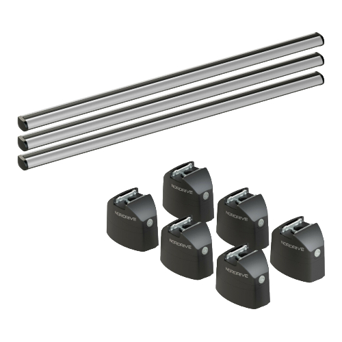 Deze set bestaat uit 3 dakdrager stangen met een draagvermogen van 50 kg per stang. De stangen zijn 150 cm lang.