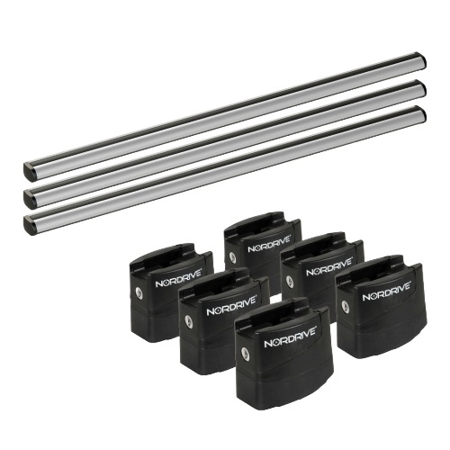 Deze set bestaat uit 3 dakdrager stangen met een draagvermogen van 50 kg per stang. De stangen zijn 150 cm lang.