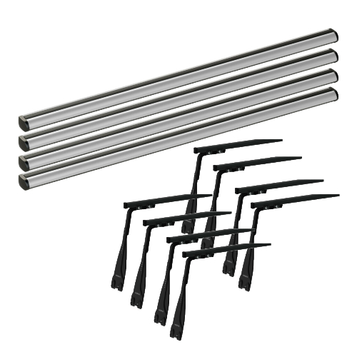 Deze set bestaat uit 4 dakdrager stangen met een draagvermogen van 50 kg per stang. De stangen zijn 150 cm lang.